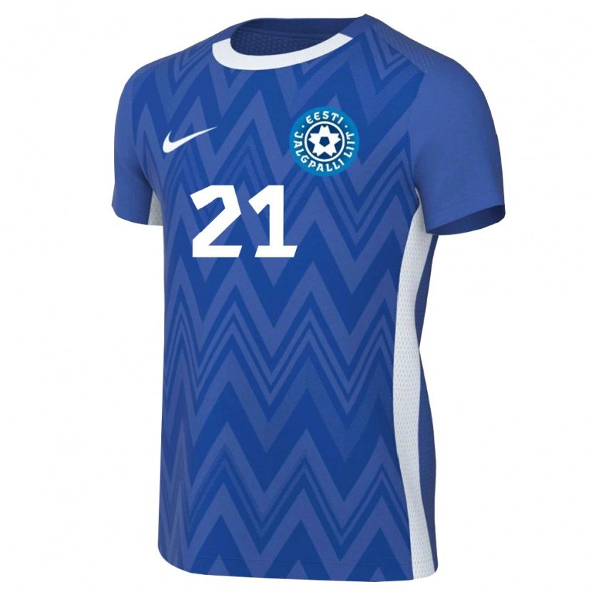 Danxen Barn Estland Ivan Krasnov #21 Mörkblå Vit Hemmatröja Matchtröjor 26-28 Tröjor T-Tröja