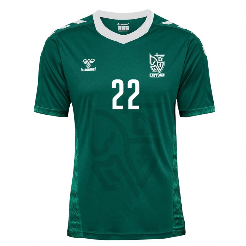 Danxen Barn Litauen Nedas Blaškevičius #22 Mörk Grön Vit Bortatröja Matchtröjor 26-28 Tröjor T-Tröja