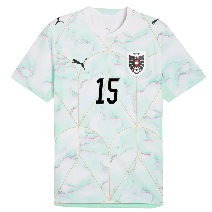 Danxen Barn Österrike Dino Kurbegovic #15 Vit Grön Guld Bortatröja Matchtröjor 26-28 Tröjor T-Tröja