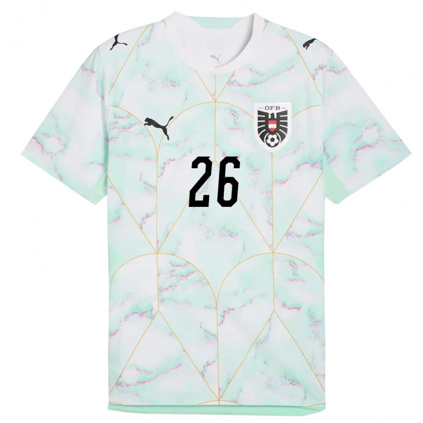 Danxen Barn Österrike Marco Grüll #26 Vit Grön Guld Bortatröja Matchtröjor 26-28 Tröjor T-Tröja