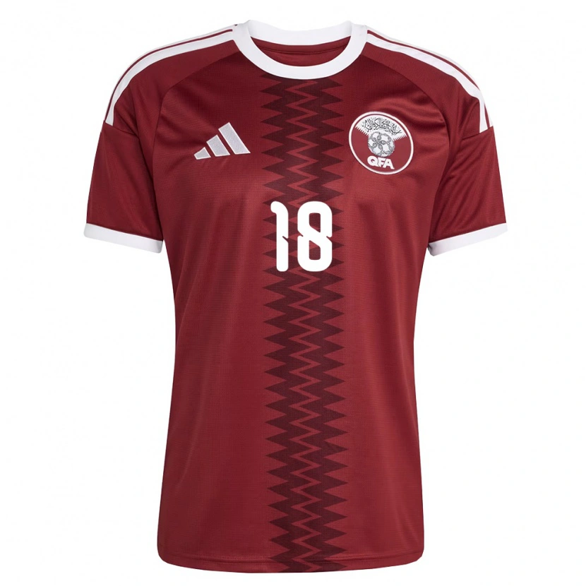 Danxen Barn Qatar Khalid Muneer Ali #18 Röd Burgund Vit Hemmatröja Matchtröjor 26-28 Tröjor T-Tröja