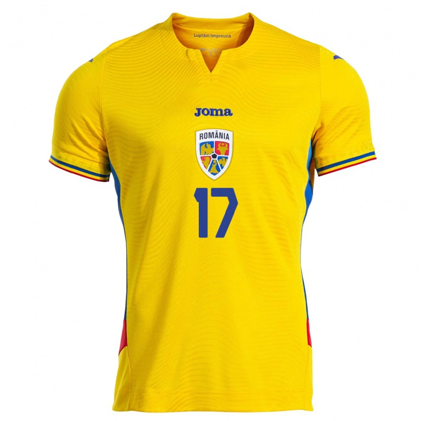 Danxen Barn Rumänien Alin Raicu #17 Gul Röd Hemmatröja Matchtröjor 26-28 Tröjor T-Tröja
