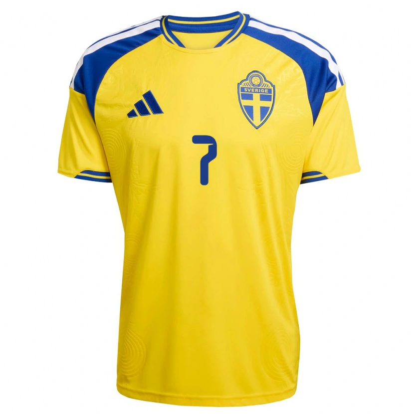 Danxen Barn Sverige Gabriel Santos #7 Gul Blå Vit Hemmatröja Matchtröjor 26-28 Tröjor T-Tröja