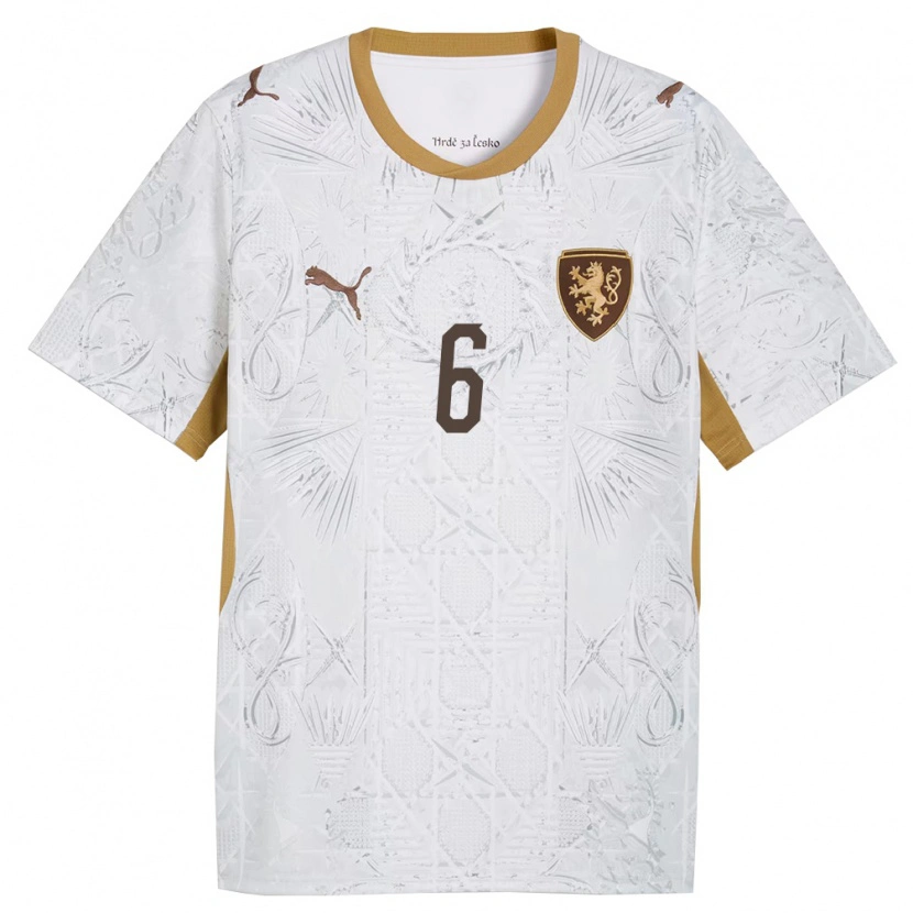 Danxen Barn Tjeckien Patrik Vydra #6 Off-White Guld Grå Bortatröja Matchtröjor 26-28 Tröjor T-Tröja