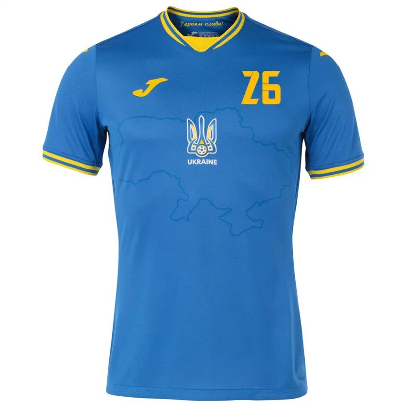 Danxen Barn Ukraina Bogdan Mykhaylichenko #26 Blå Bortatröja Matchtröjor 24-26 Tröjor T-Tröja