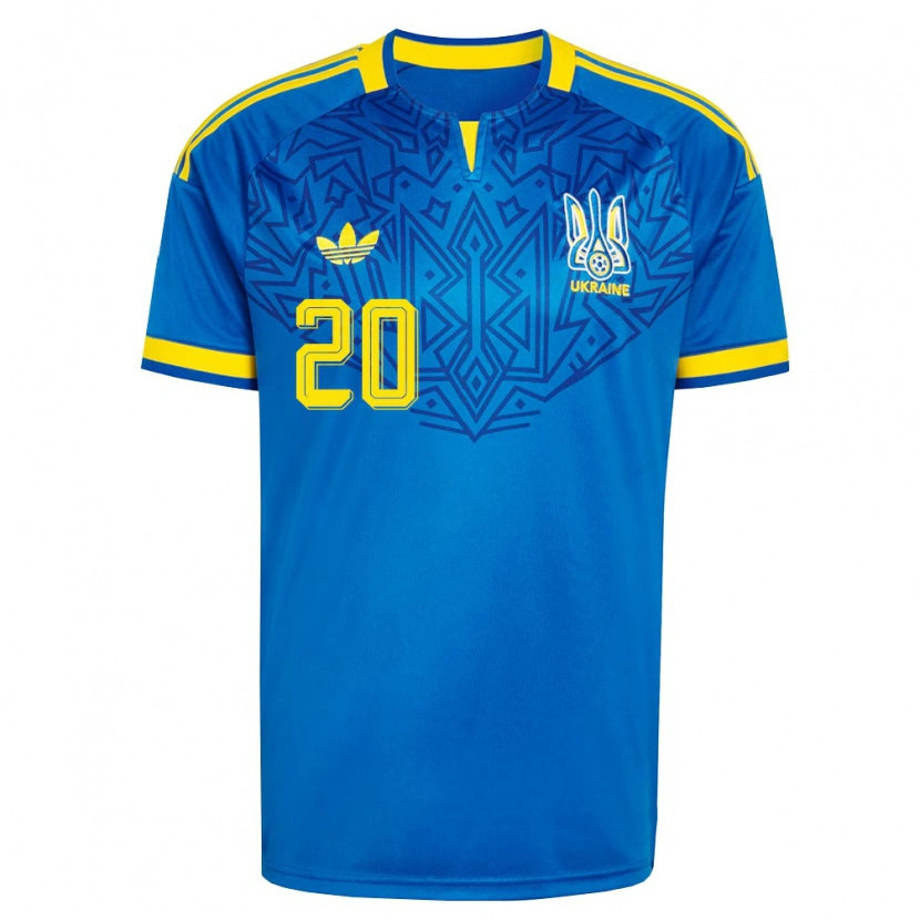 Danxen Barn Ukraina Eldar Kuliyev #20 Blå Gul Marin Bortatröja Matchtröjor 26-28 Tröjor T-Tröja