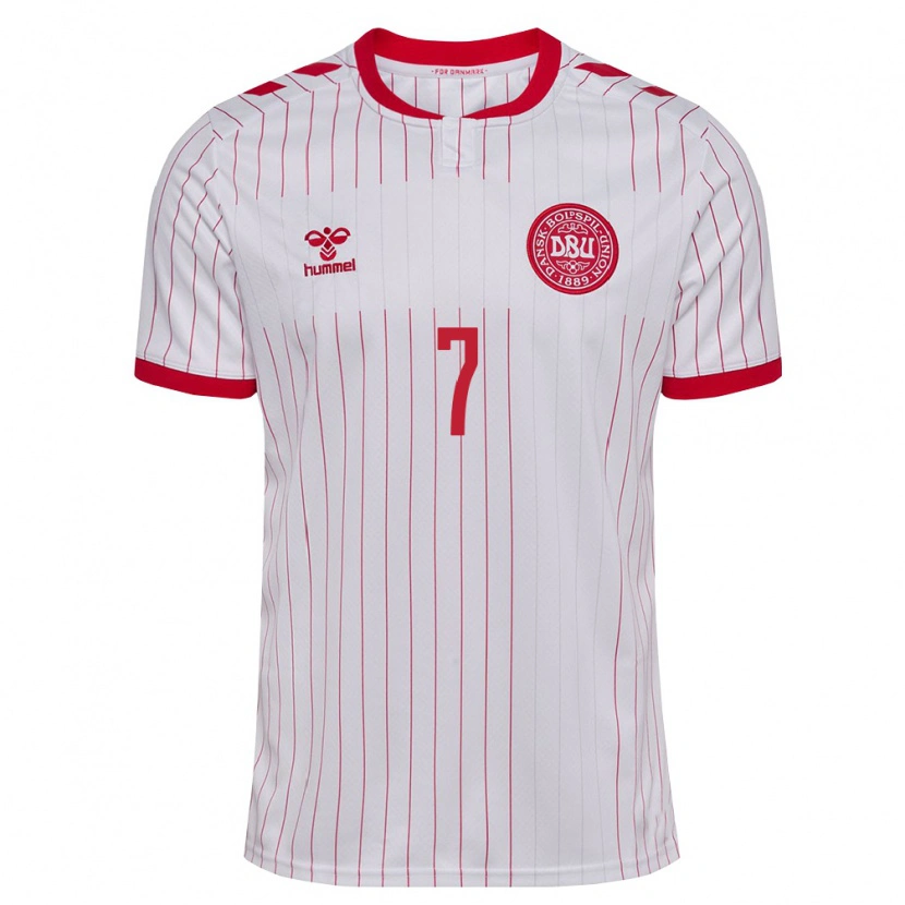 Danxen Kvinnor Danmark Sanne Troelsgaard #7 Vit Röd Bortatröja Matchtröjor 26-28 Tröjor T-Tröja