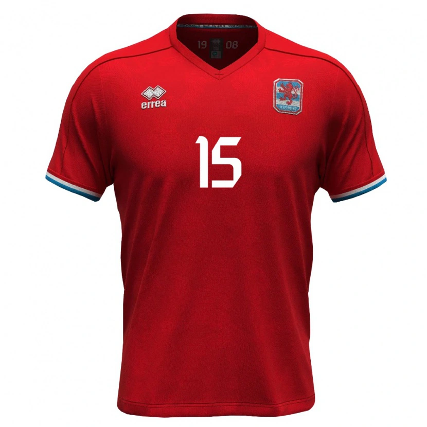Danxen Kvinnor Luxemburg Flavjo Hoxha #15 Röd Vit Blå Hemmatröja Matchtröjor 26-28 Tröjor T-Tröja