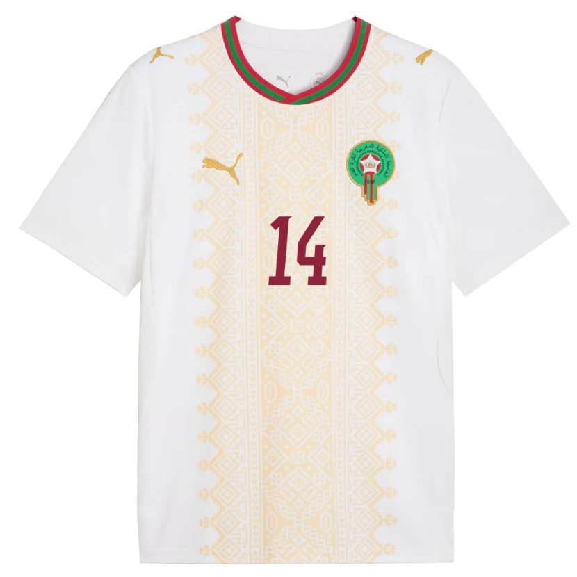 Danxen Kvinnor Marocko Yahya Kablal #14 Vit Guld Röd Bortatröja Matchtröjor 26-28 Tröjor T-Tröja