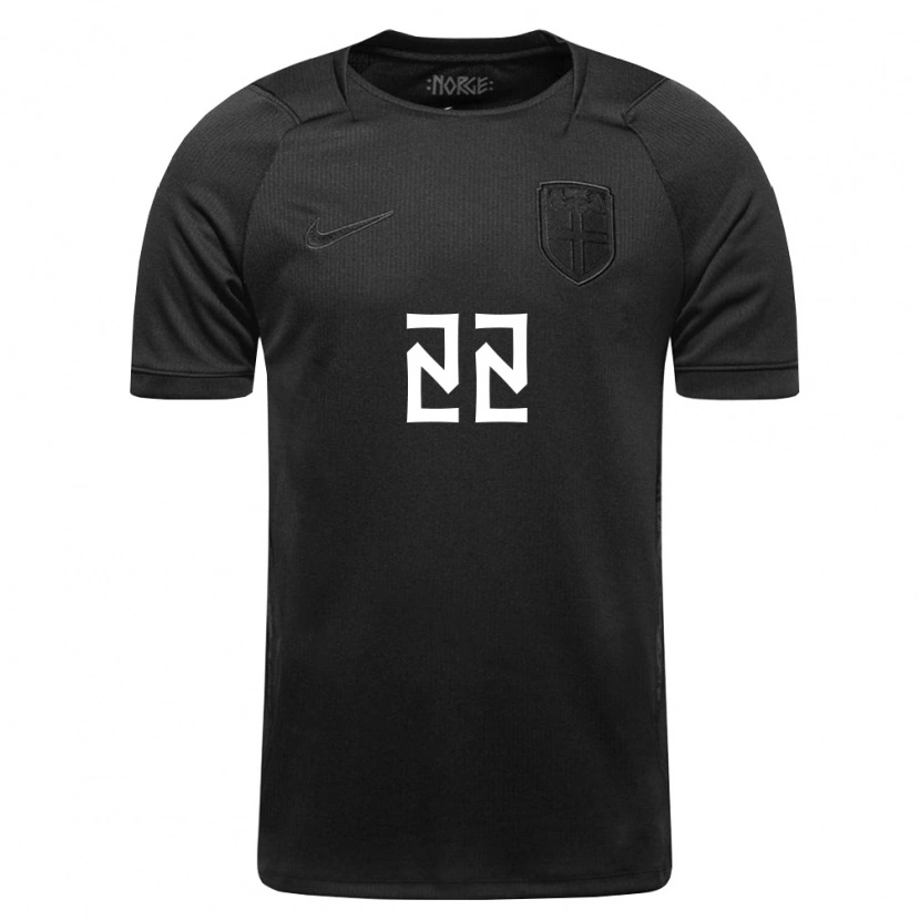 Danxen Kvinnor Norge Dennis Gjengaar #22 Svart Bortatröja Matchtröjor 26-28 Tröjor T-Tröja