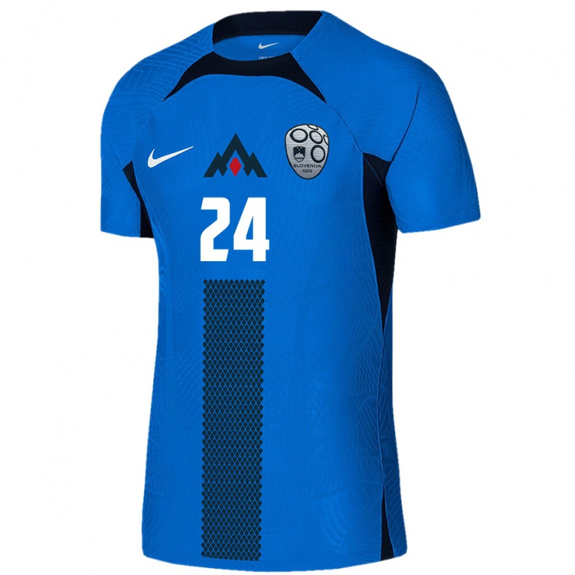 Danxen Kvinnor Slovenien Nino Zugelj #24 Blå Vit Bortatröja Matchtröjor 26-28 Tröjor T-Tröja