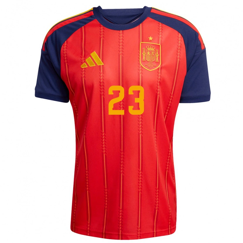 Danxen Kvinnor Spanien Unai Simón #23 Röd Marin Gul Hemmatröja Matchtröjor 26-28 Tröjor T-Tröja