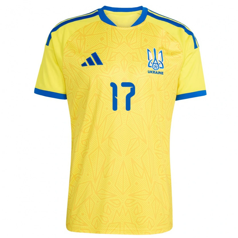 Danxen Kvinnor Ukraina Ivan Denysov #17 Gul Blå Hemmatröja Matchtröjor 26-28 Tröjor T-Tröja