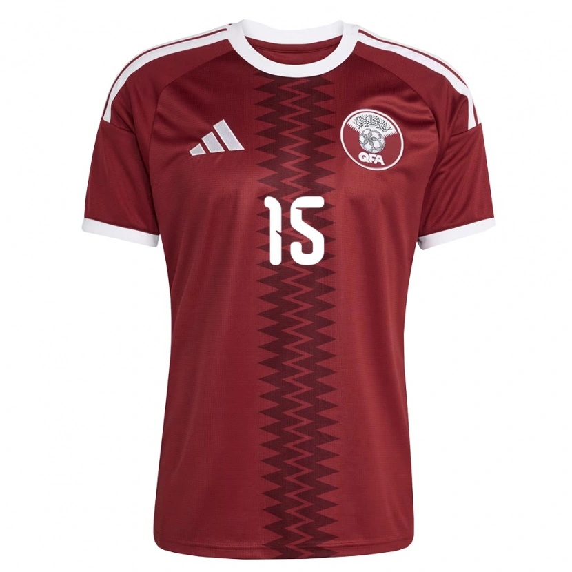 Danxen Män Qatar Asim Ahmed Noureldin #15 Röd Burgund Vit Hemmatröja Matchtröjor 26-28 Tröjor T-Tröja