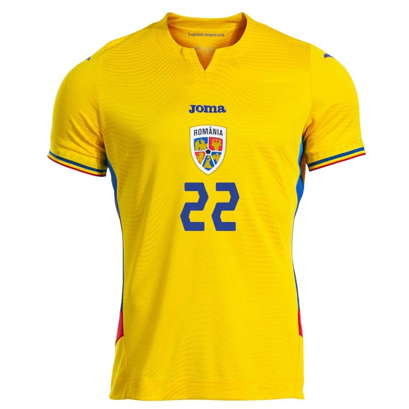 Danxen Män Rumänien Vasile Mogoș #22 Gul Röd Hemmatröja Matchtröjor 26-28 Tröjor T-Tröja