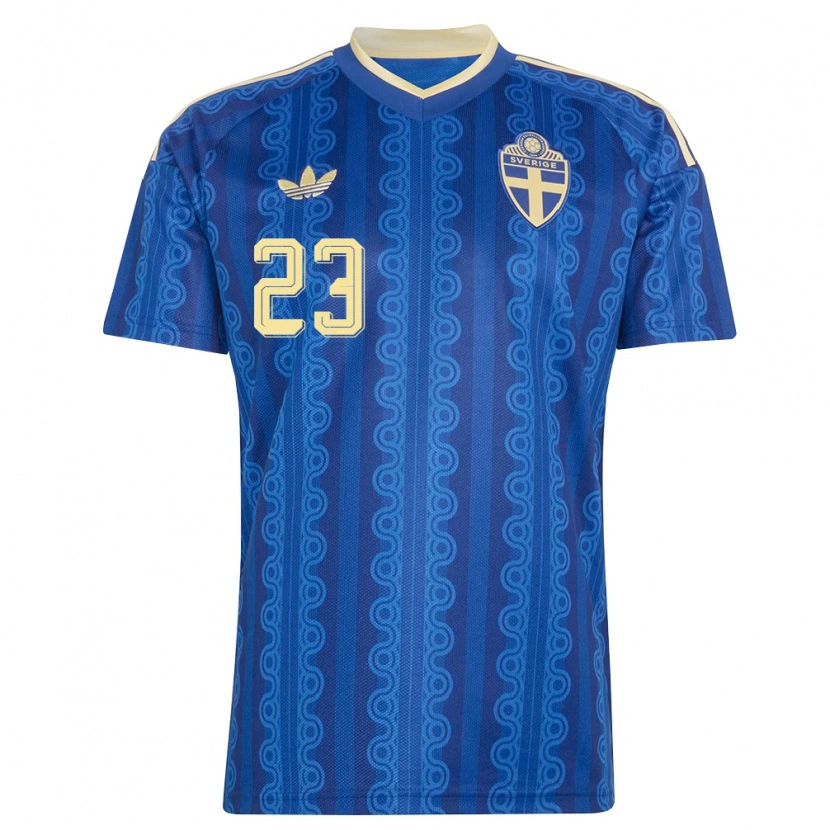 Danxen Män Sverige Simon Eriksson #23 Blå Marin Gul Bortatröja Matchtröjor 26-28 Tröjor T-Tröja